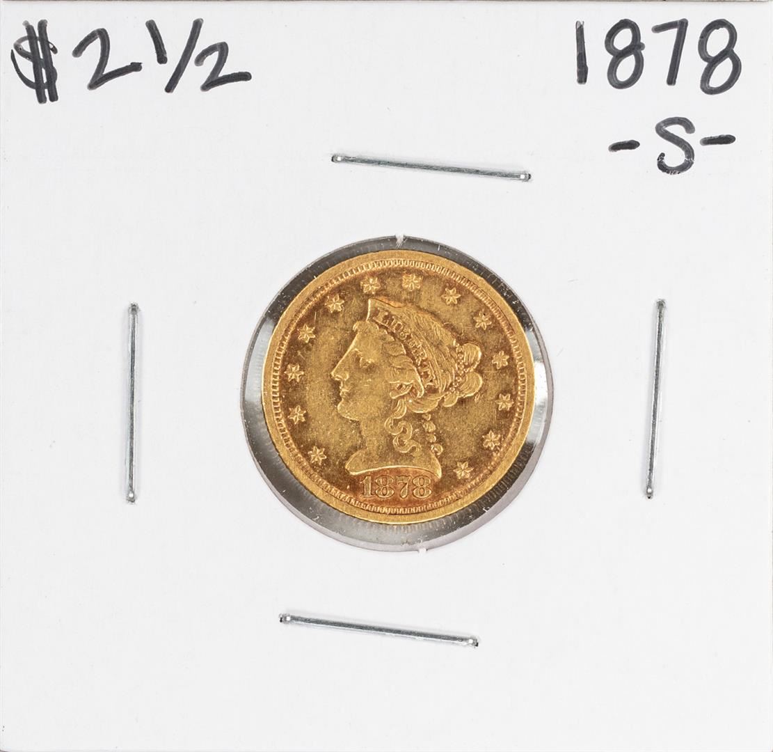 One 1878-S $2 1/2 Liberty Head Quarter Eagle Gold Coin.