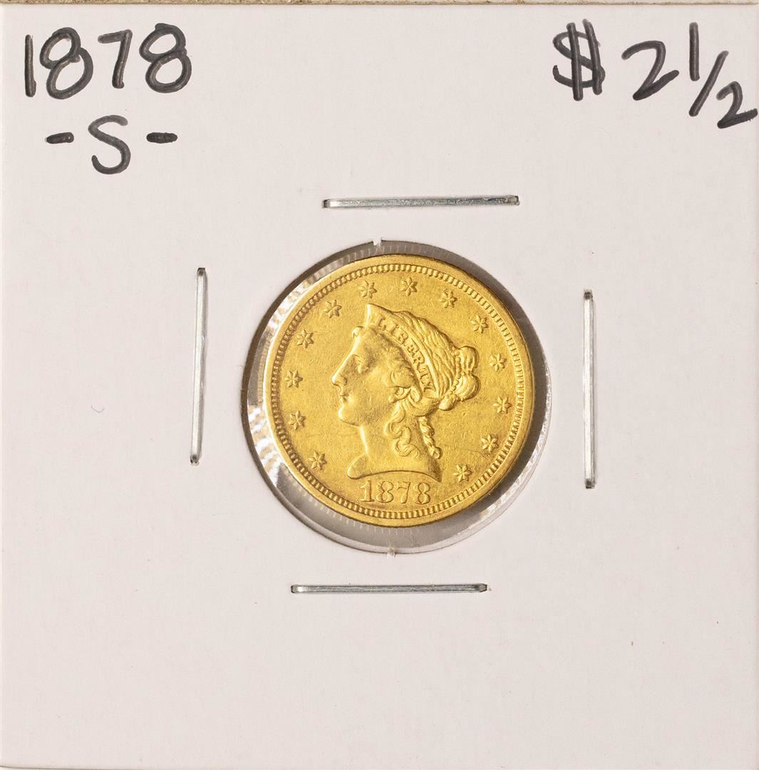 One 1878-S $2 1/2 Liberty Head Quarter Eagle Gold Coin.