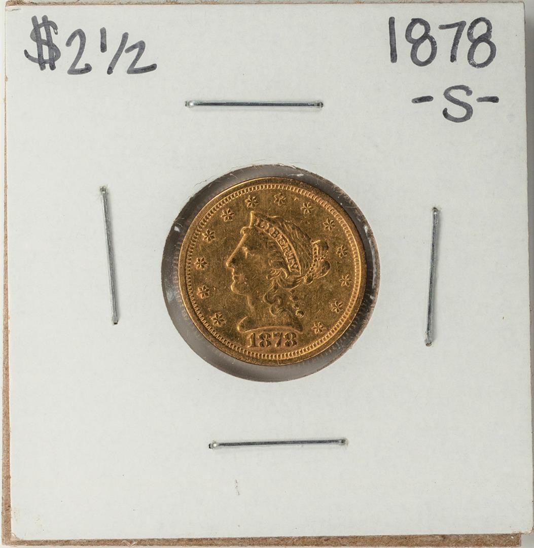 One 1878-S $2 1/2 Liberty Head Quarter Eagle Gold Coin.