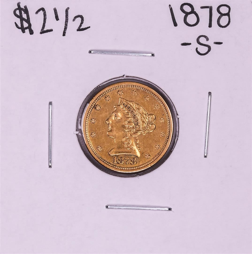One 1878-S $2 1/2 Liberty Head Quarter Eagle Gold Coin.
