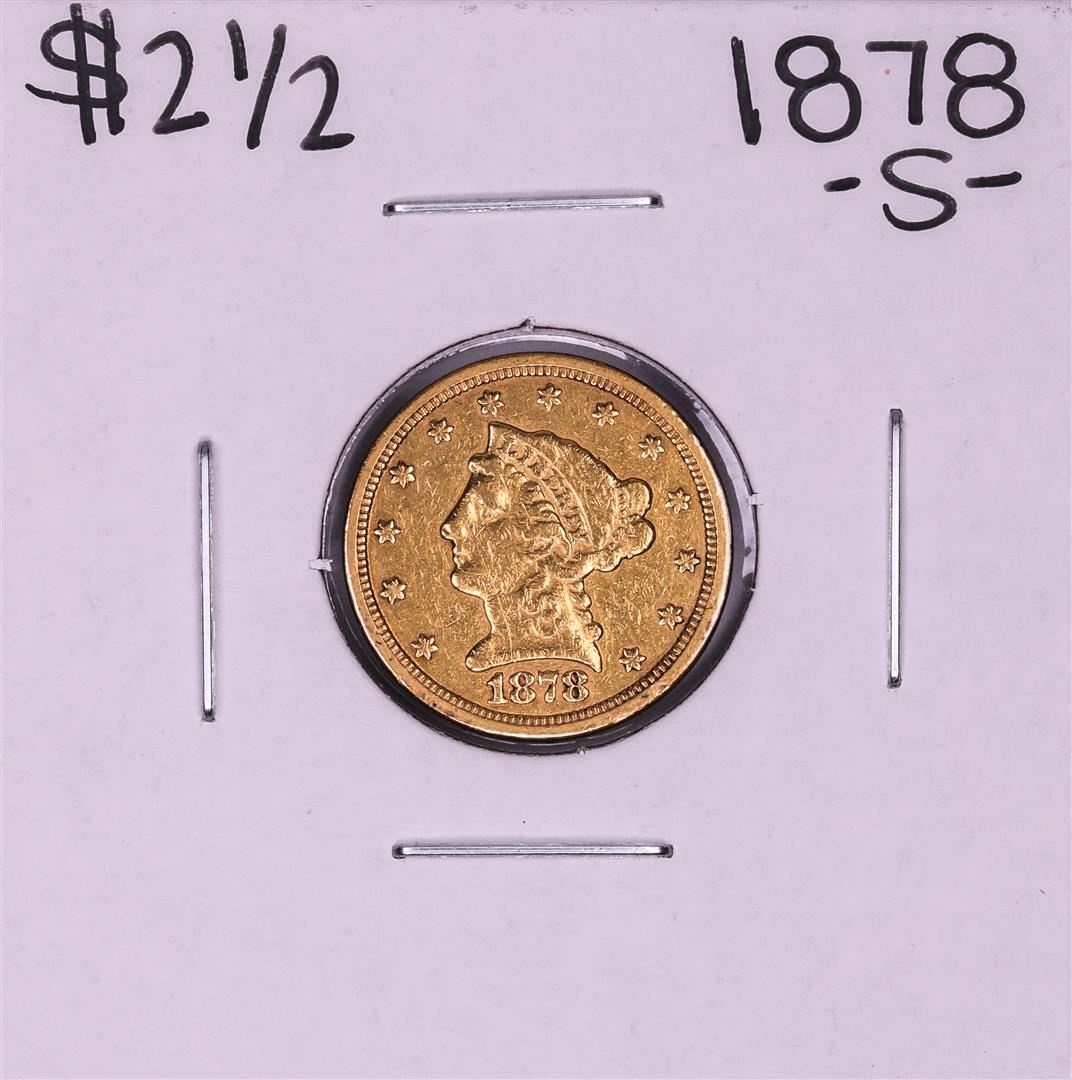 One 1878-S $2 1/2 Liberty Head Quarter Eagle Gold Coin.