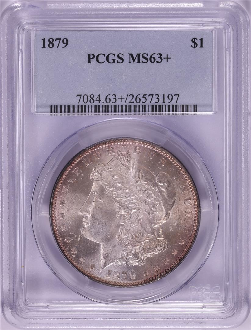 One 1879 $1 Morgan Silver Dollar Coin PCGS MS63+. PCGS Graded.