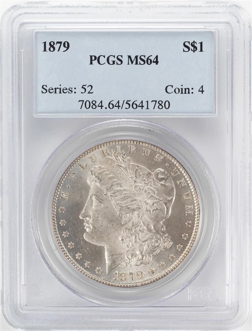 One 1879 $1 Morgan Silver Dollar Coin PCGS MS64. PCGS Graded.