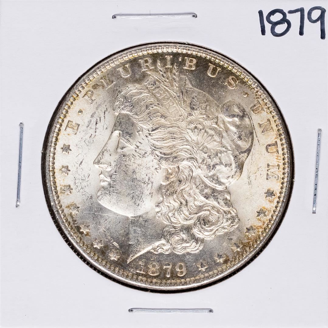 One 1879 $1 Morgan Silver Dollar Coin.