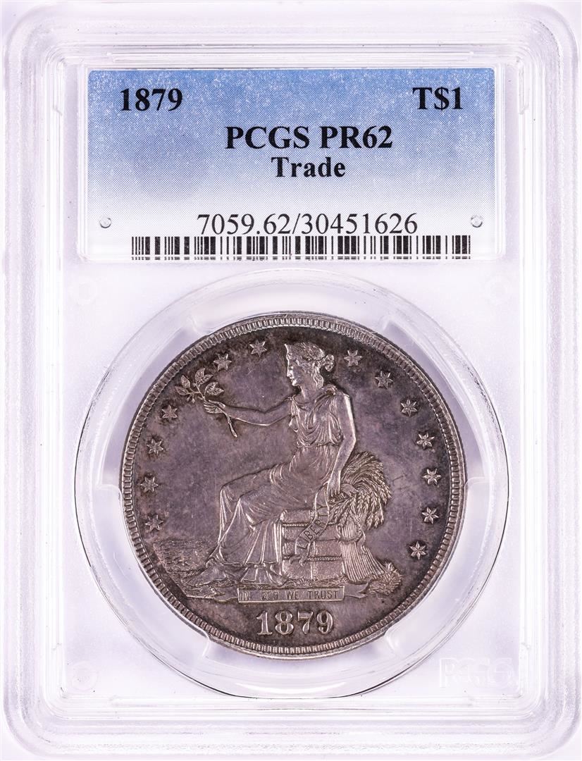 One 1879 $1 Proof Trade Silver Dollar Coin PCGS PR62. PCGS Graded.