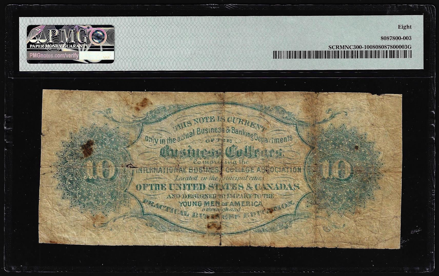 One 1879 $10 First National College Bank Minnesota, St. Paul Obsolete Scrip Note PMG Very Good 8. PMG Certified.