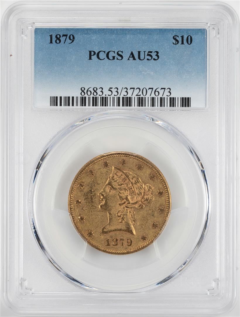 One 1879 $10 Liberty Head Eagle Gold Coin PCGS AU53. PCGS Graded.