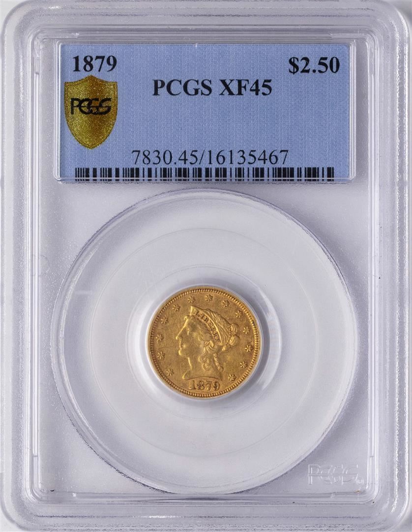 One 1879 $2 1/2 Liberty Head Quarter Eagle Gold Coin PCGS XF45. PCGS Graded.