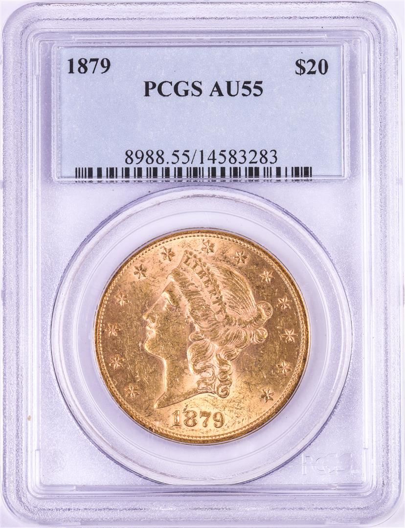 One 1879 $20 Liberty Head Double Eagle Gold Coin PCGS AU55. PCGS Graded.