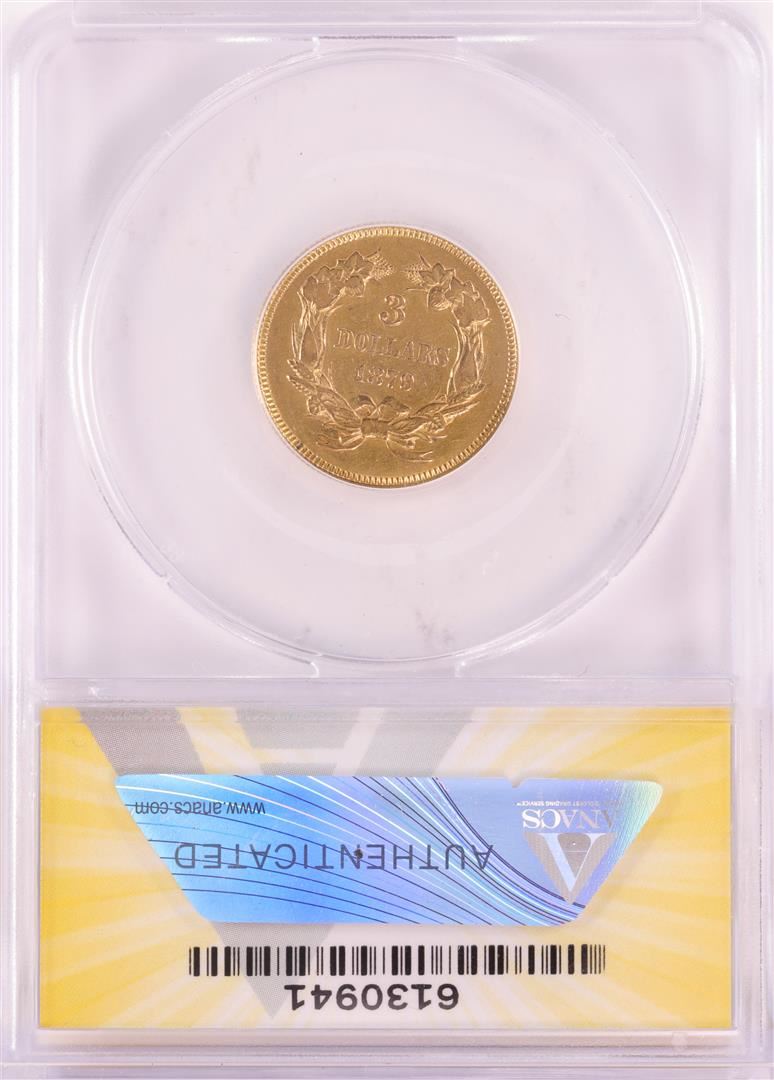 One 1879 $3 Indian Princess Head Gold Coin ANACS AU50 Details. ANACS Certified.