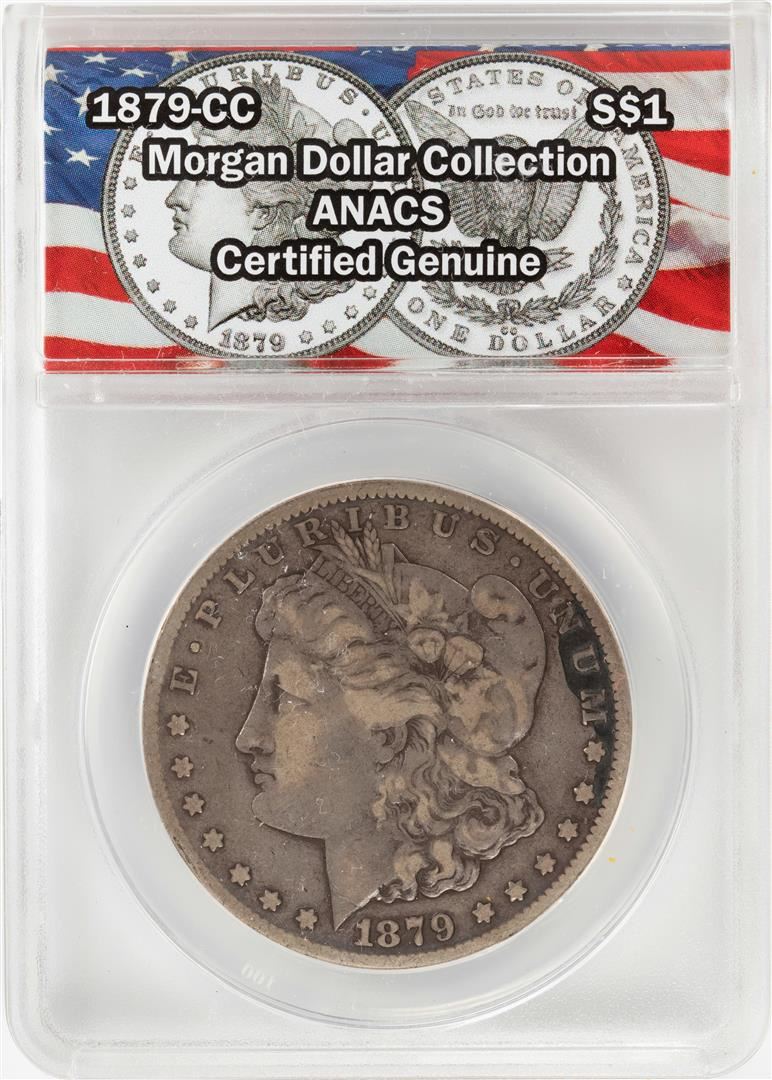 One 1879-CC $1 Morgan Silver Dollar Coin ANACS Certified Genuine. ANACS Certified.