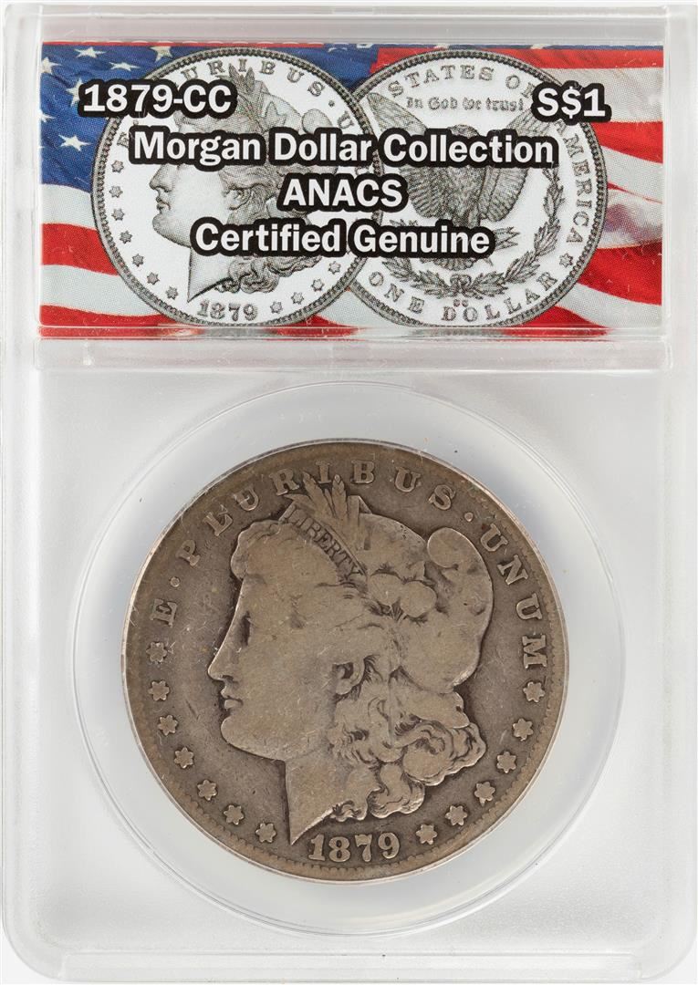 One 1879-CC $1 Morgan Silver Dollar Coin ANACS Certified Genuine. ANACS Certified.