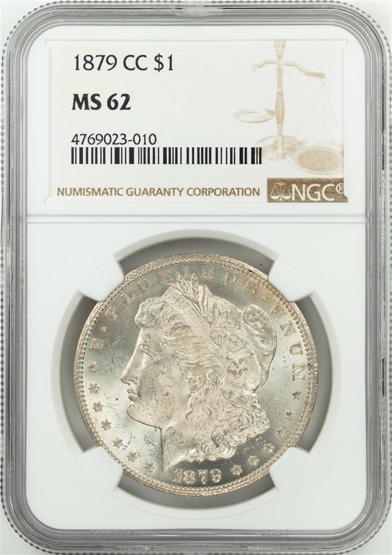 One 1879-CC $1 Morgan Silver Dollar Coin NGC MS62. NGC Certified.