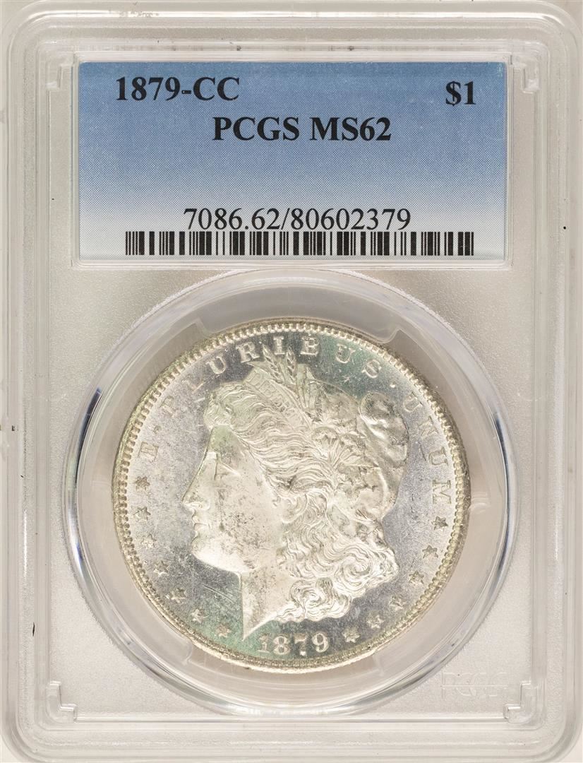 One 1879-CC $1 Morgan Silver Dollar Coin PCGS MS62. PCGS Graded.