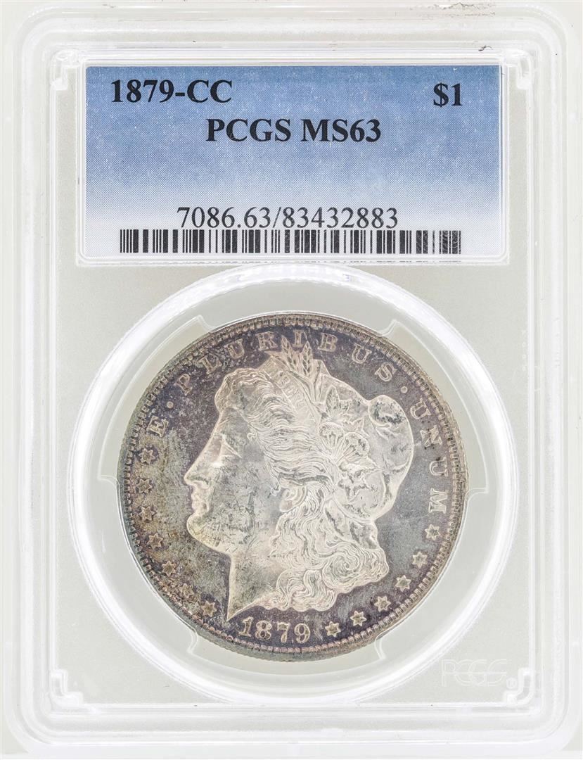 One 1879-CC $1 Morgan Silver Dollar Coin PCGS MS63. PCGS Graded.