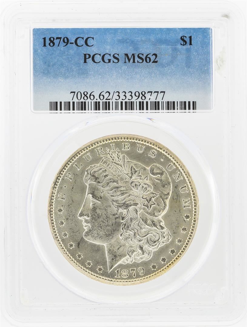 One 1879-CC $1 Morgan Silver Dollar PCGS Graded MS62. PCGS Graded.