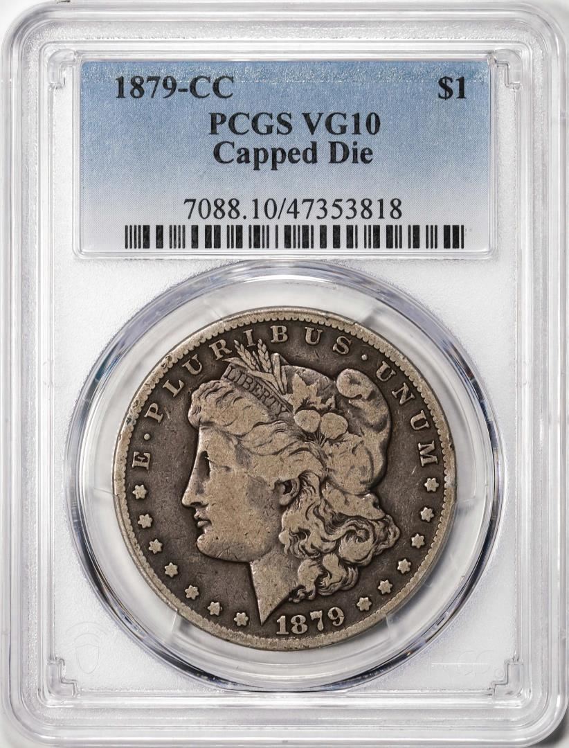 One 1879-CC Capped Die $1 Morgan Silver Dollar Coin PCGS VG10. PCGS Graded.