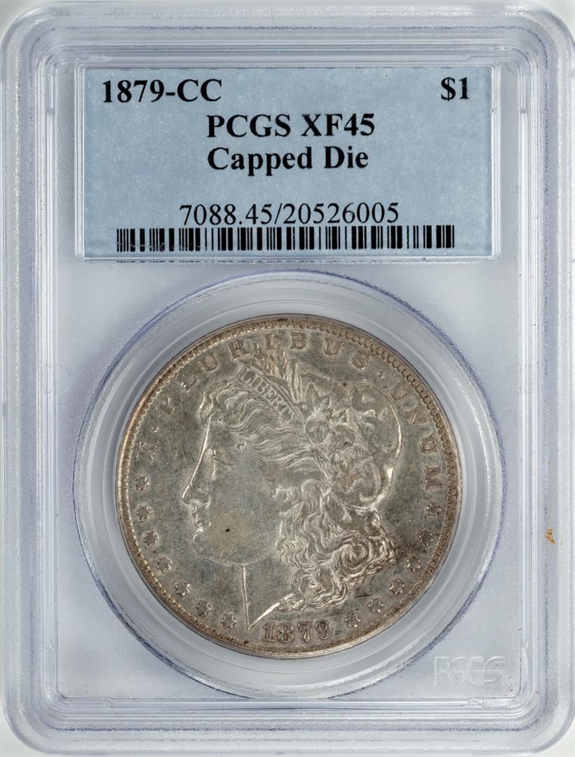 One 1879-CC Capped Die $1 Morgan Silver Dollar Coin PCGS XF45. PCGS Graded.