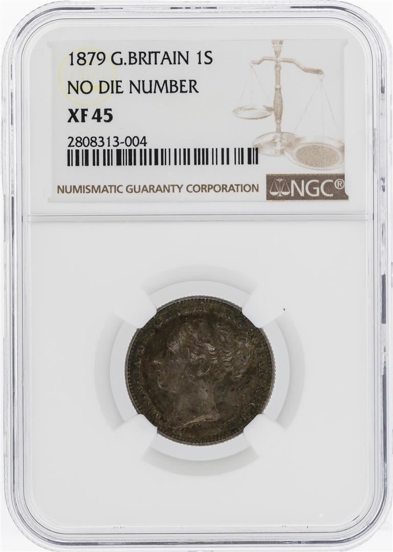 One 1879 No Die Number Great Britain 1 Shilling Coin NGC XF45. NGC Certified.
