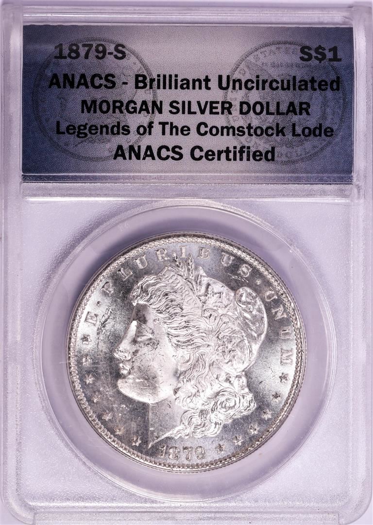 1879-S $1 Morgan Silver Dollar Coin ANACS Brilliant Uncirculated Nice Toning