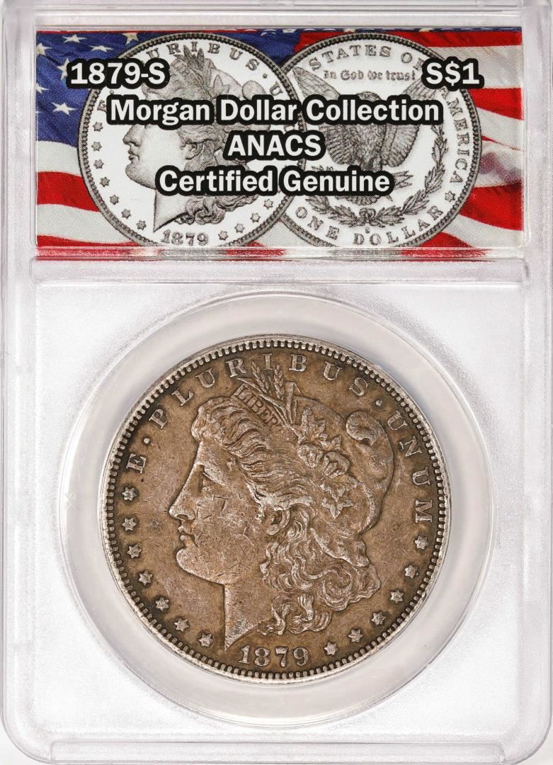 One 1879-S $1 Morgan Silver Dollar Coin ANACS Genuine. ANACS Certified.
