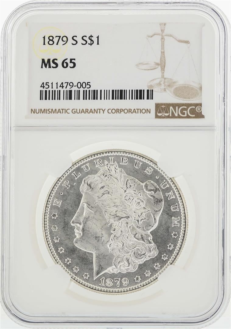 One 1879-S $1 Morgan Silver Dollar Coin NGC MS65. NGC Certified.