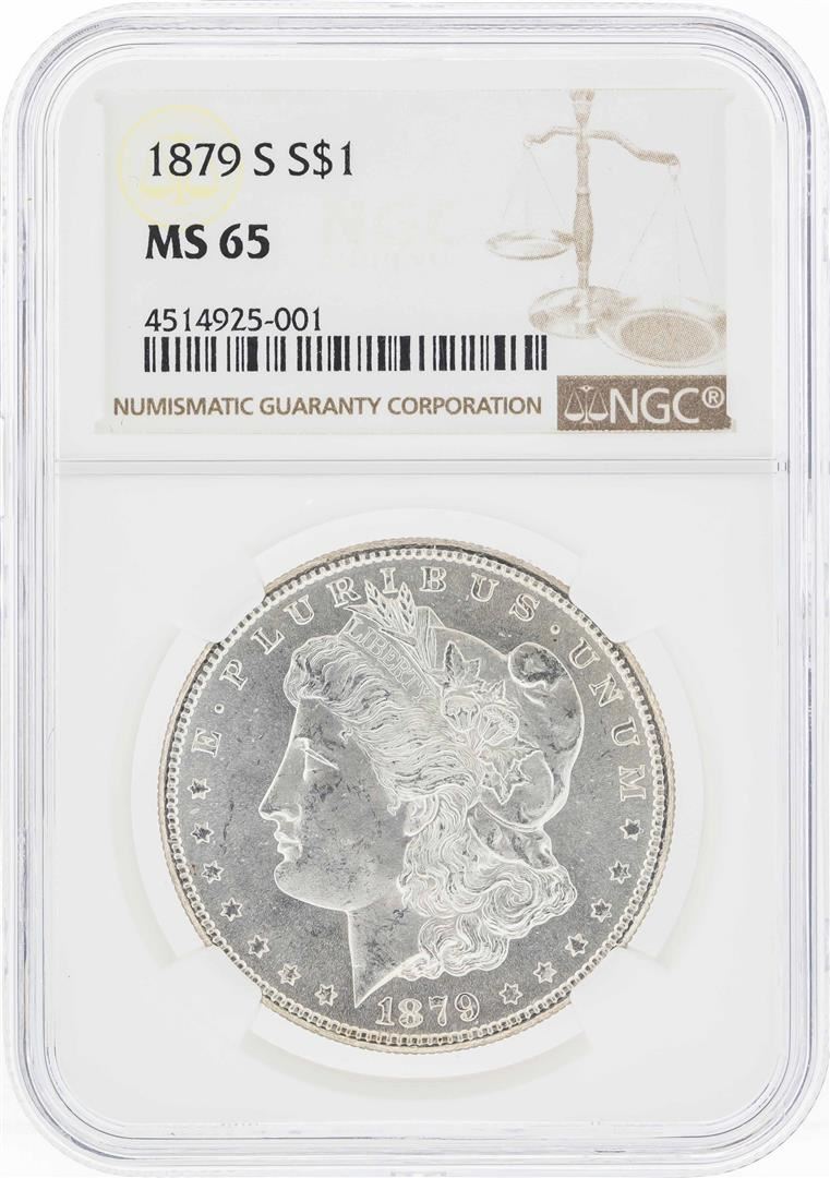 One 1879-S $1 Morgan Silver Dollar Coin NGC MS65. NGC Certified.