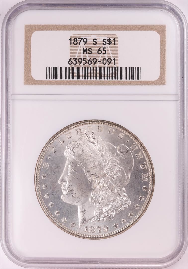 One 1879-S $1 Morgan Silver Dollar Coin NGC MS65. NGC Certified.