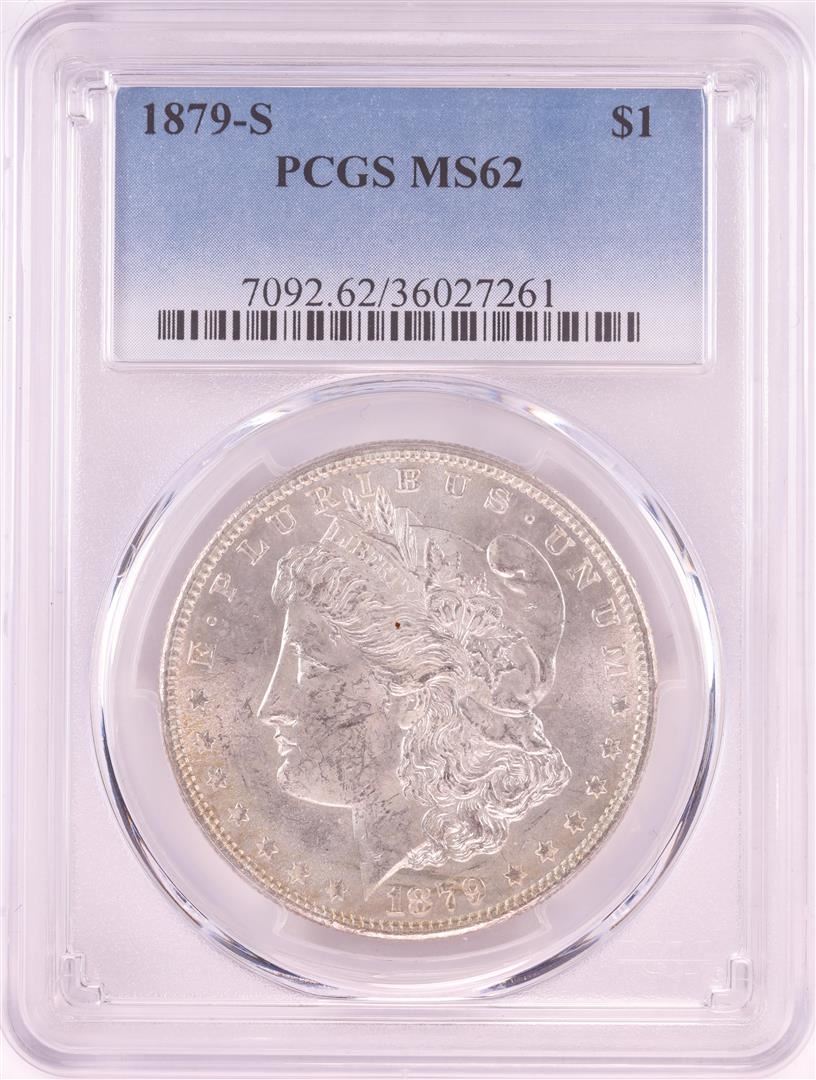 One 1879-S $1 Morgan Silver Dollar Coin PCGS MS62. PCGS Graded.