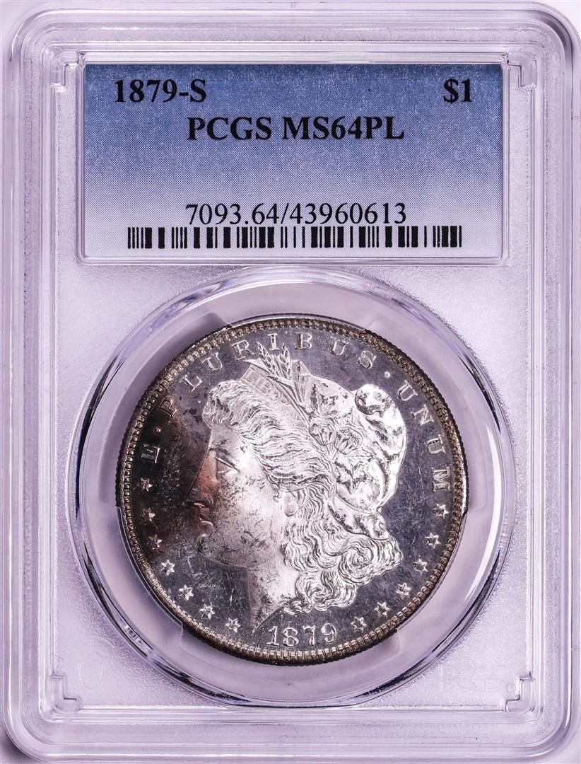One 1879-S $1 Morgan Silver Dollar Coin PCGS MS64PL. PCGS Graded.