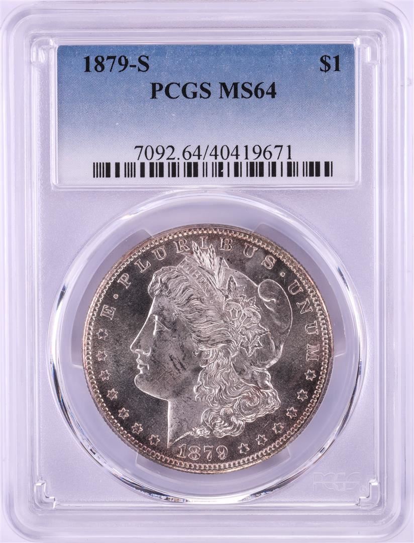 One 1879-S $1 Morgan Silver Dollar Coin PCGS MS64. PCGS Graded.