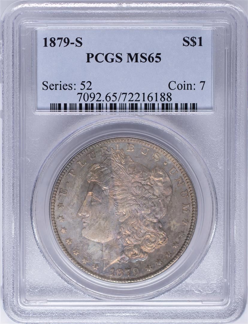 One 1879-S $1 Morgan Silver Dollar Coin PCGS MS65 Amazing Toning. PCGS Graded.
