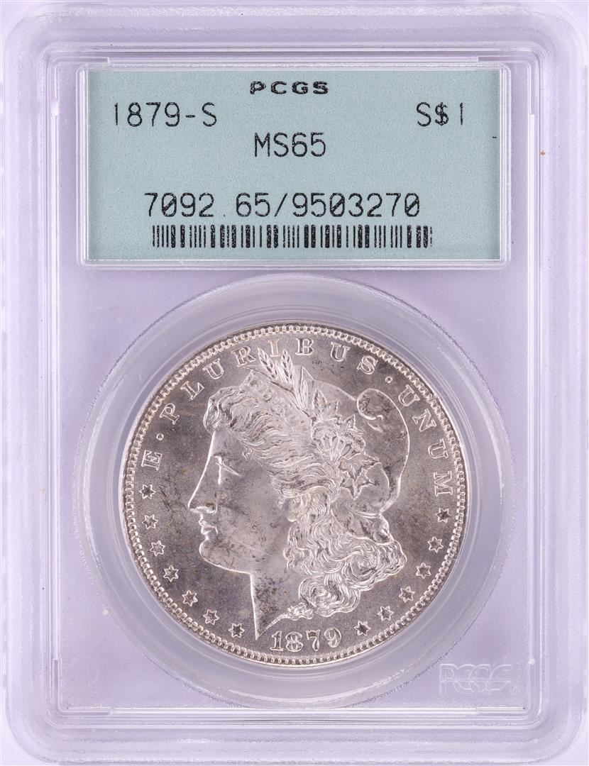One 1879-S $1 Morgan Silver Dollar Coin PCGS MS65 OGH. PCGS Graded.