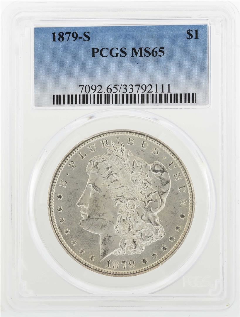 One 1879-S $1 Morgan Silver Dollar Coin PCGS MS65. PCGS Graded.