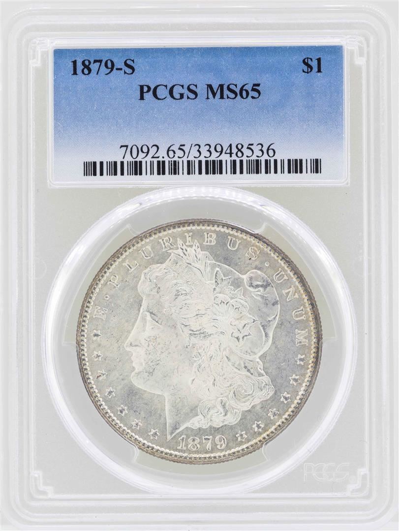 One 1879-S $1 Morgan Silver Dollar Coin PCGS MS65. PCGS Graded.