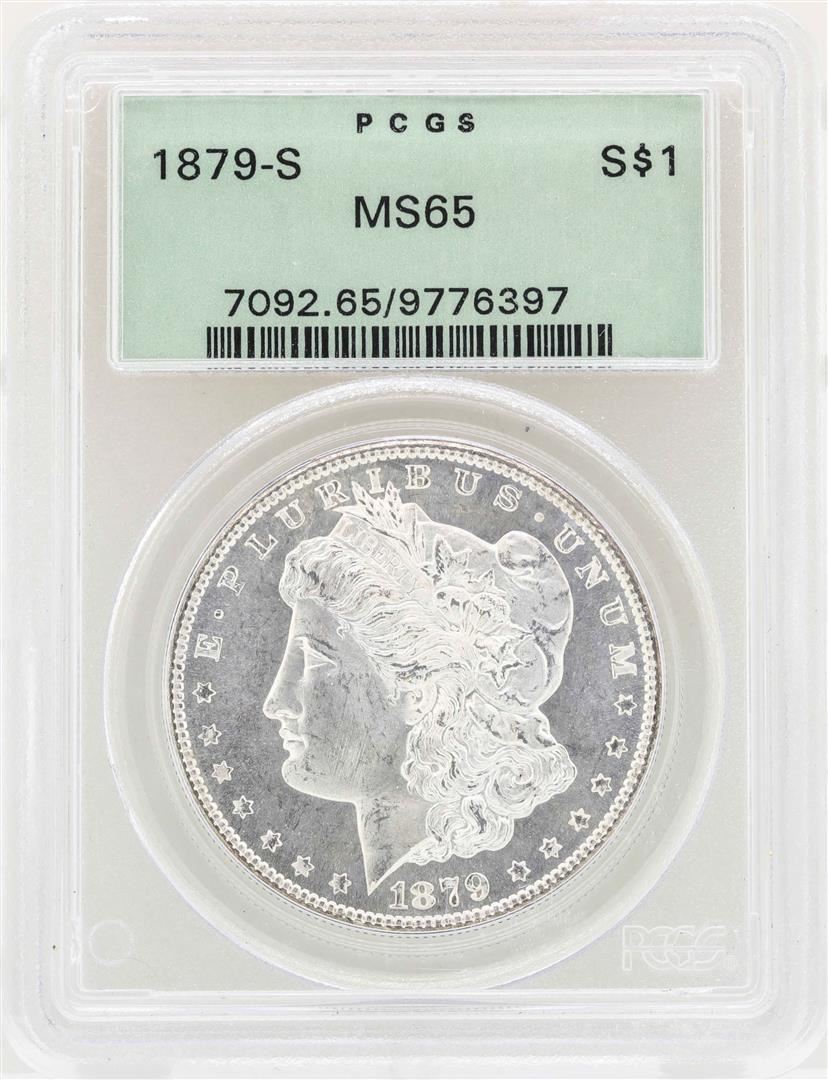 One 1879-S $1 Morgan Silver Dollar Coin PCGS MS65. PCGS Graded.