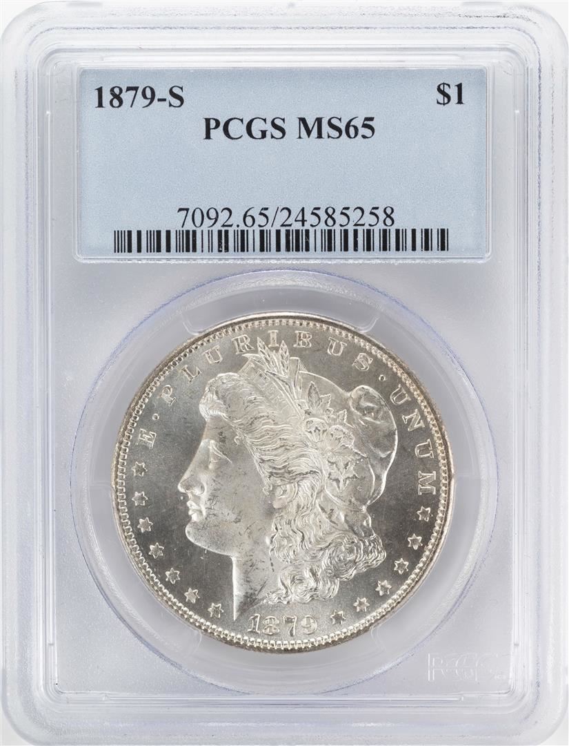 One 1879-S $1 Morgan Silver Dollar Coin PCGS MS65. PCGS Graded.