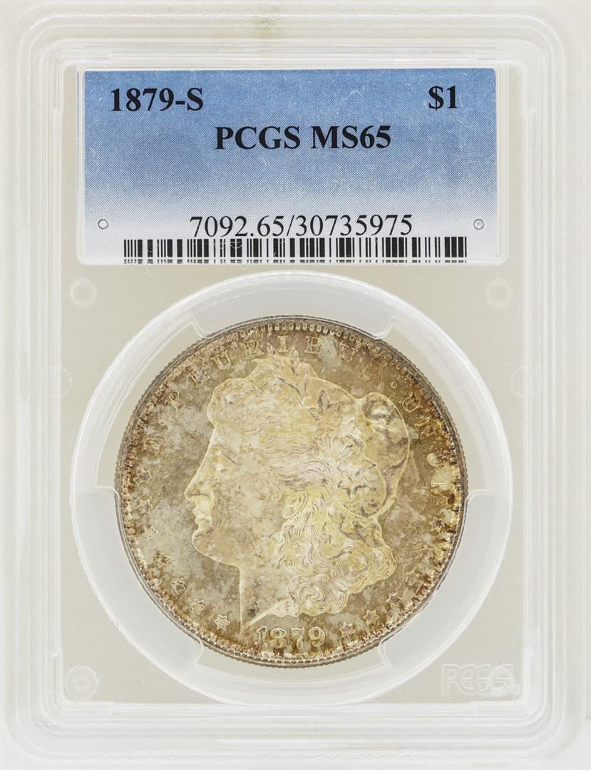 One 1879-S $1 Morgan Silver Dollar Coin PCGS MS65. PCGS Graded.