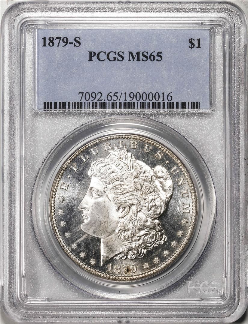 One 1879-S $1 Morgan Silver Dollar Coin PCGS MS65. PCGS Graded.