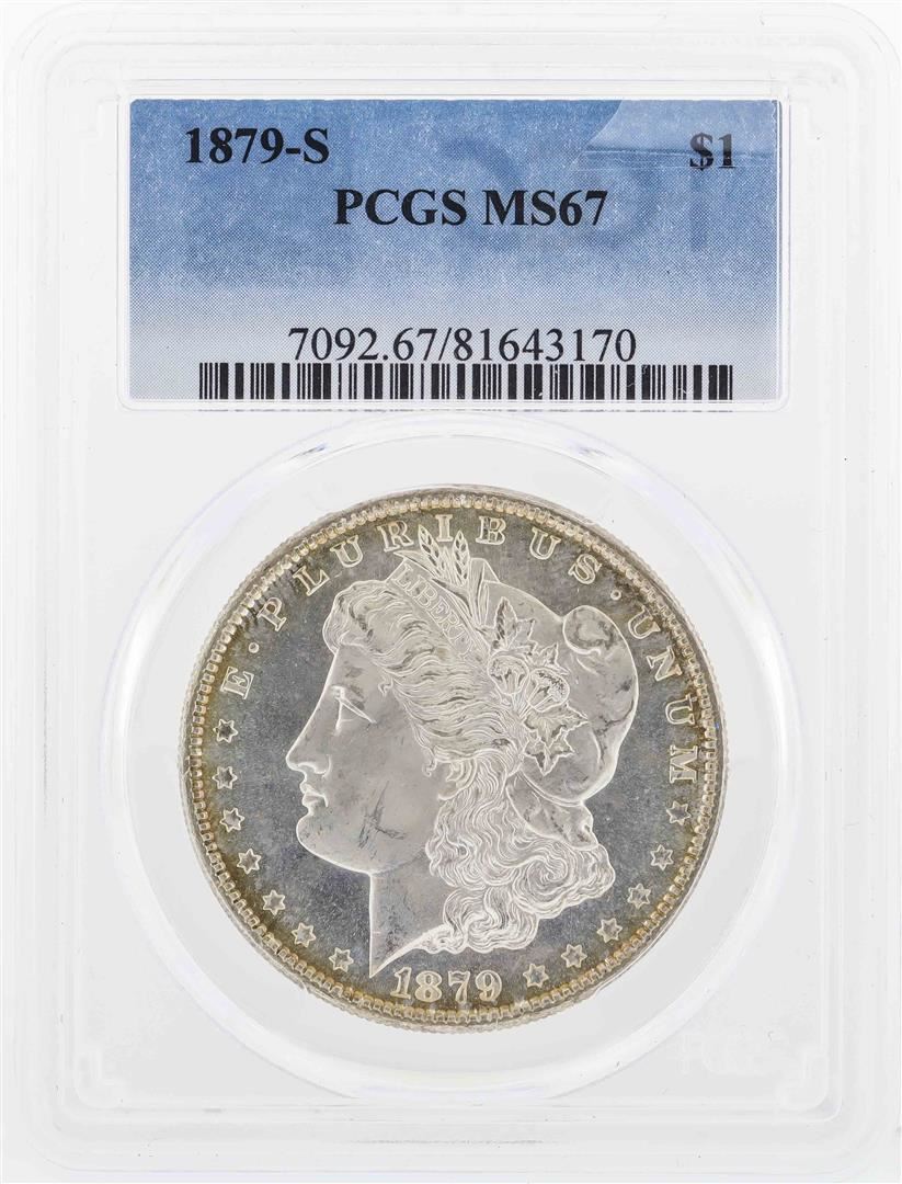 One 1879-S $1 Morgan Silver Dollar Coin PCGS MS67. PCGS Graded.