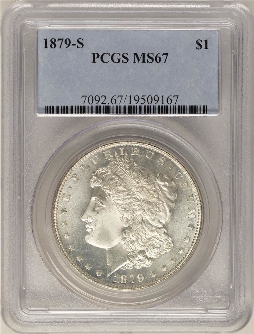 One 1879-S $1 Morgan Silver Dollar Coin PCGS MS67. PCGS Graded.
