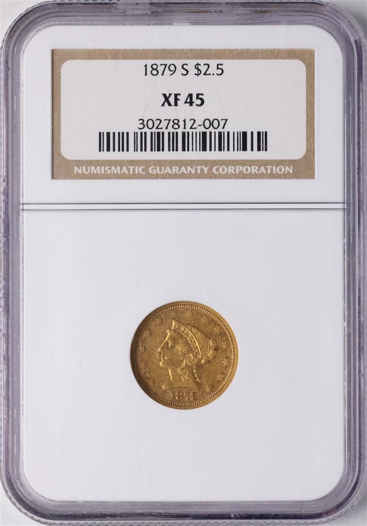 One 1879-S $2 1/2 Liberty Head Quarter Eagle Gold Coin NGC XF45. NGC Certified.