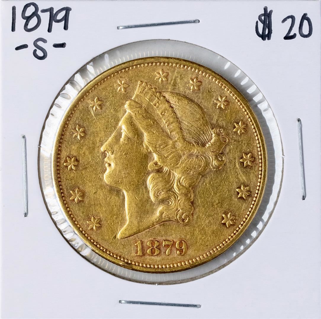 One 1879-S $20 Liberty Head Double Eagle Gold Coin.