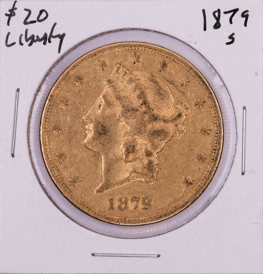 One 1879-S $20 Liberty Head Double Eagle Gold Coin.