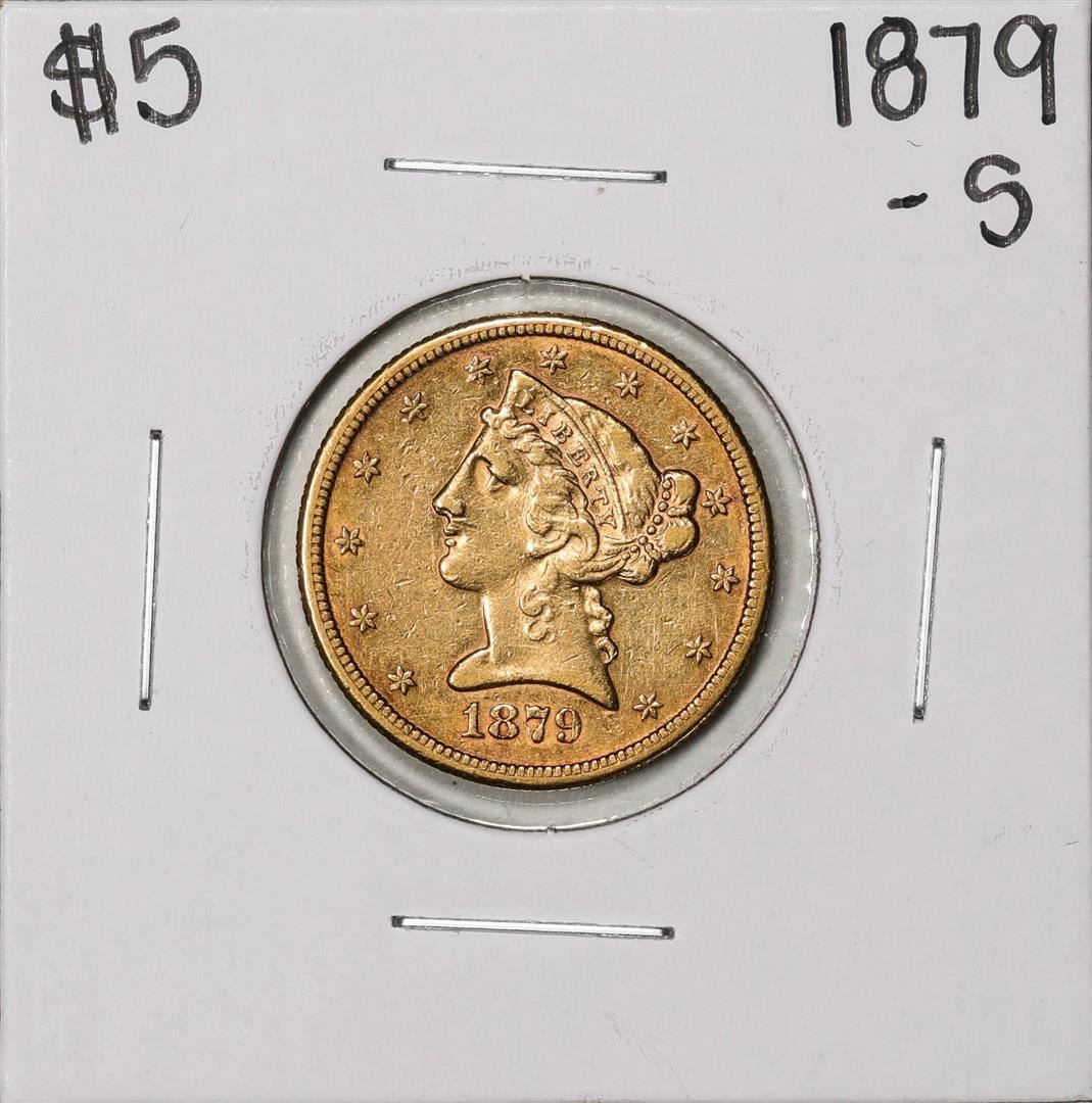 One 1879-S $5 Liberty Head Half Eagle Gold Coin.