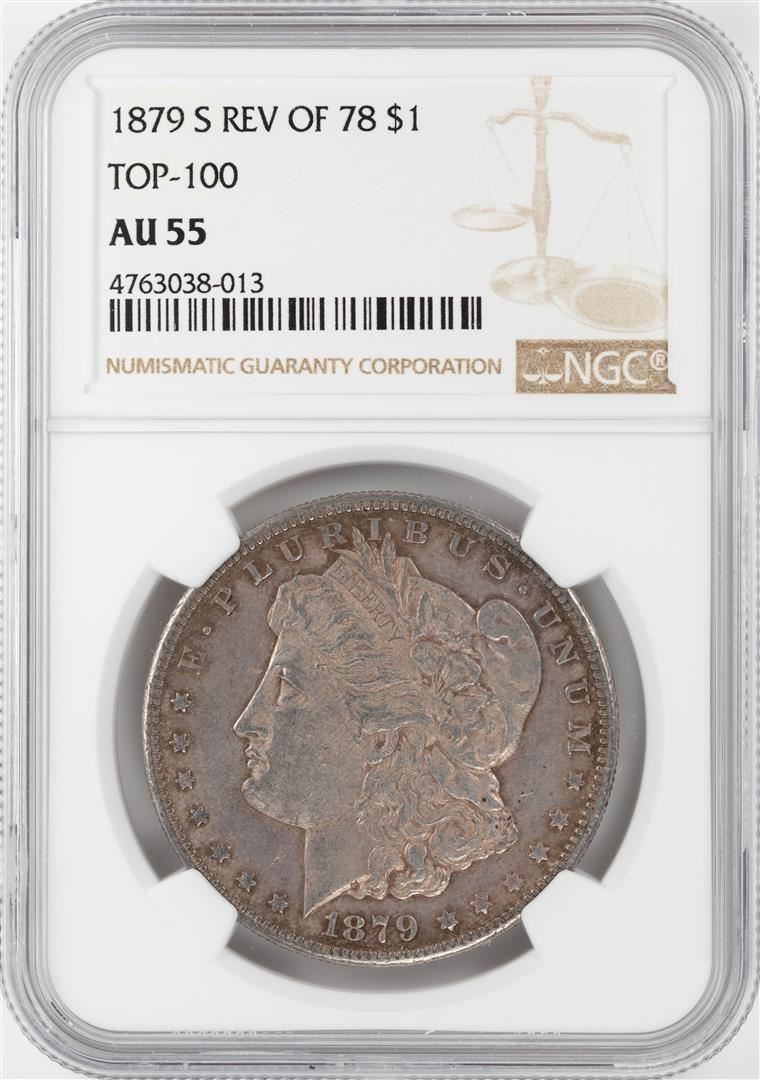 1879-S Rev of 78' $1 Morgan Silver Dollar Coin NGC AU55 Top-100