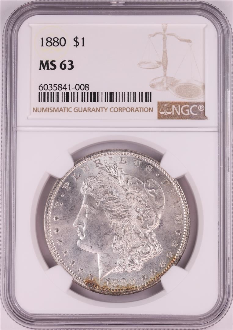 One 1880 $1 Morgan Silver Dollar Coin NGC MS63.
