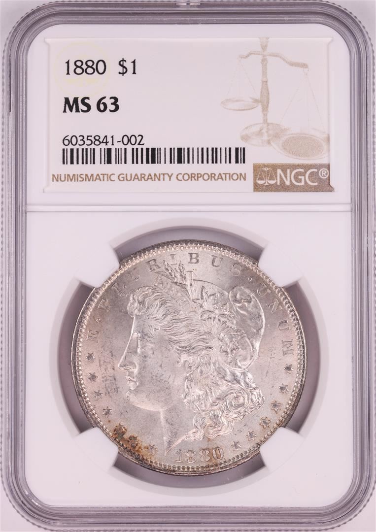 One 1880 $1 Morgan Silver Dollar Coin NGC MS63.