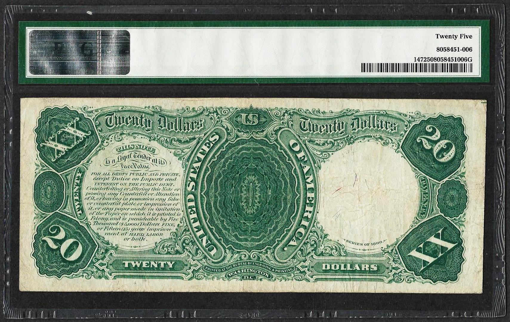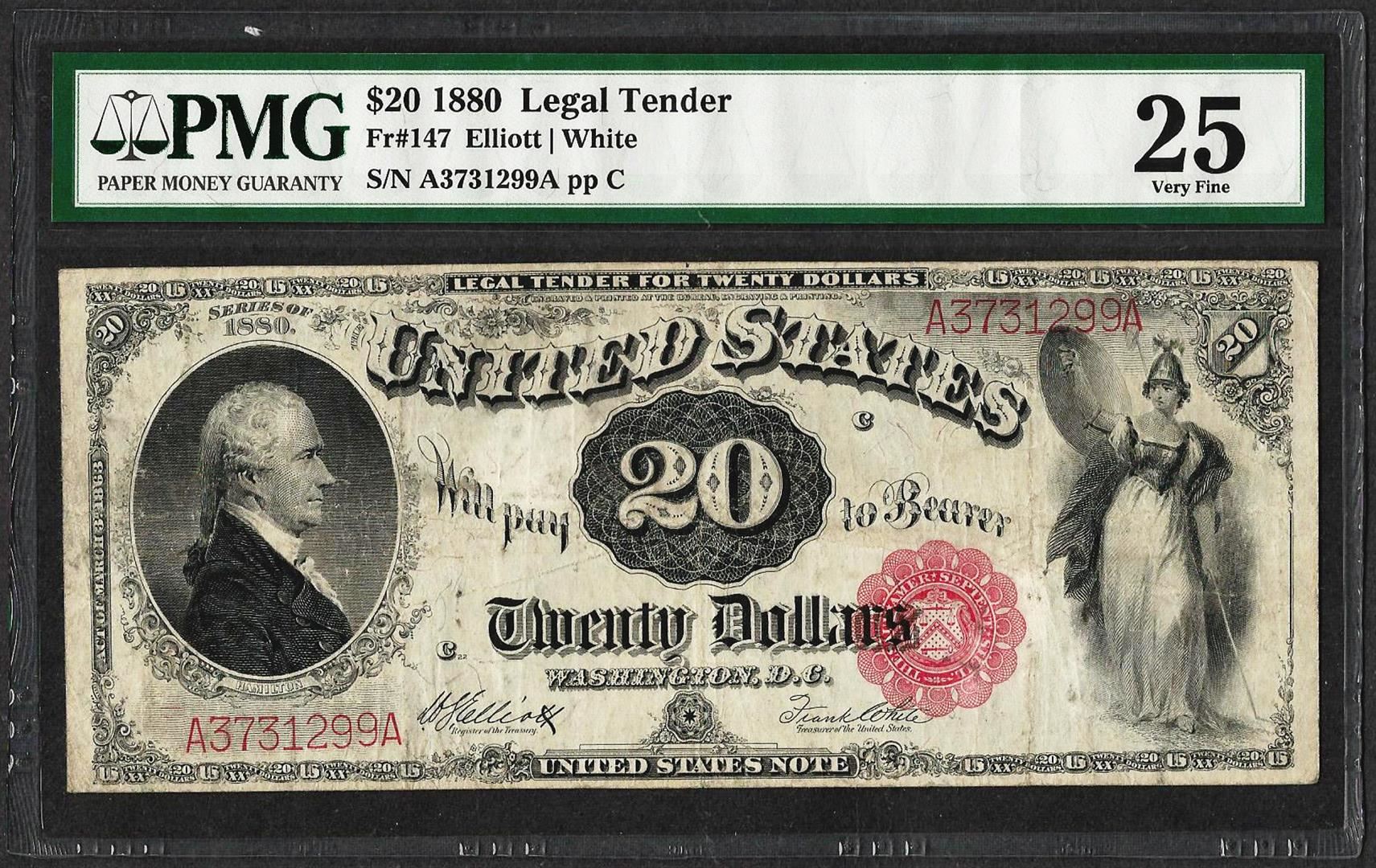 One 1880 $20 Legal Tender Note Fr.147 PMG Very Fine 25. PMG Certified.