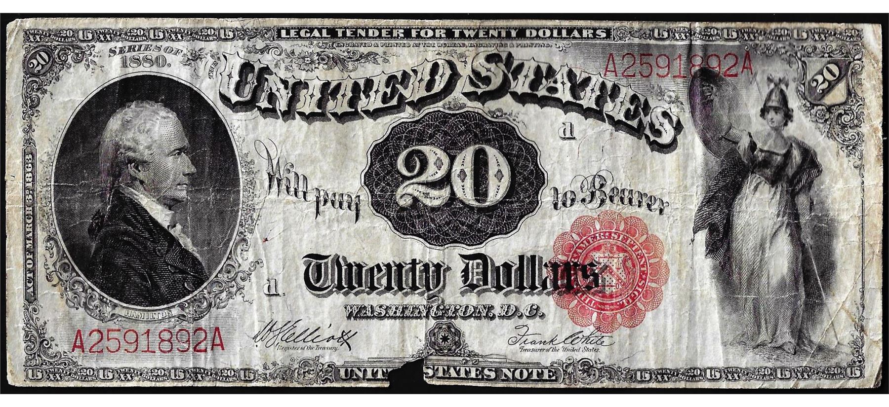 One 1880 $20 Legal Tender Note.